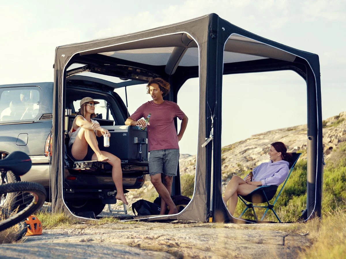 Der HUB 1.0 eignet sich auch hervorragend als Anbauzelt für ein Auto, SUV oder Camperbus. Mit der optionalen Schleuse sorgen Sie dafür, dass der Pavillon dicht an Ihr Fahrzeug anschließt. Dank der vielen Möglichkeiten ist der Dometic HUB 1.0 ein unverzichtbarer Begleiter für Camper, die gerne und oft unterwegs sind.
