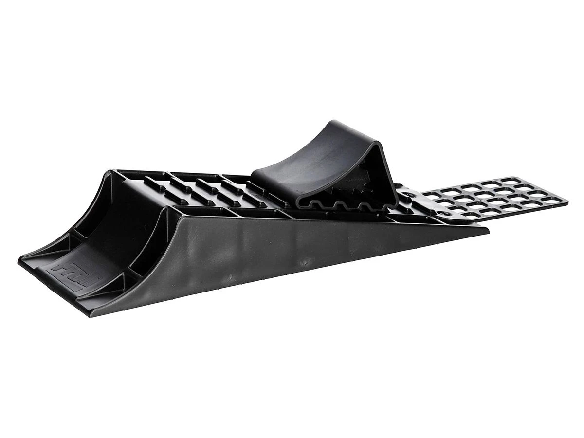 Dieser Auffahrblock von Froli ist kann pro Reifen bis zu 2000 kg tragen. Außerdem können Sie stufenlos auf jede gewünschte Höhe fahren.