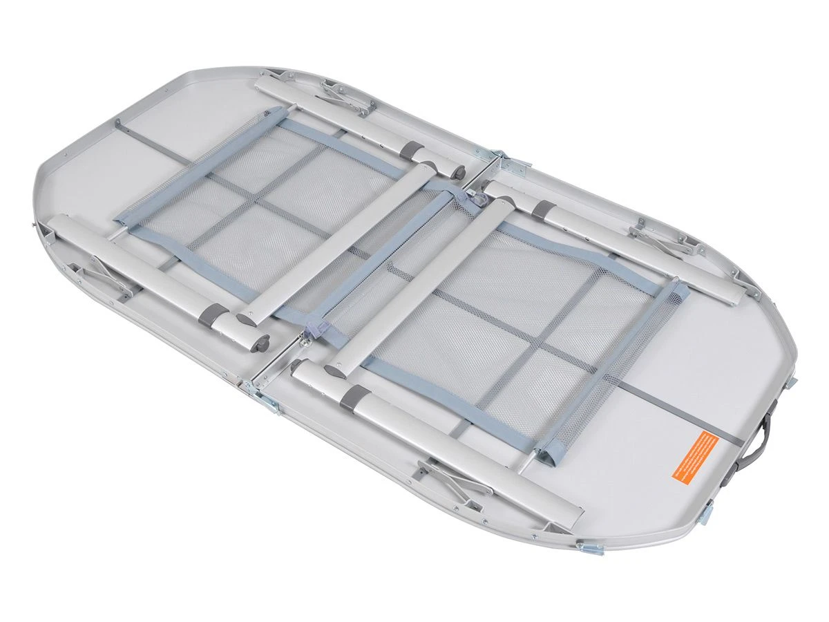 Das zusätzliche Netz unter der Tischplatte ist ideal, um Zeitungen, Bücher oder andere Dinge darin aufzubewahren. Nach Gebrauch kann der Tisch kompakt zusammengeklappt werden. Da die Tischplatte teilbare ist können Sie den Tisch wie einen Koffer zusammenlegen.