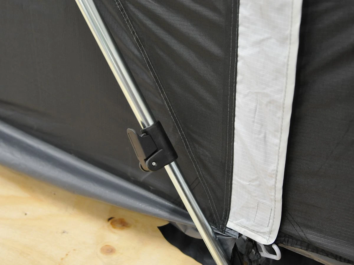 Im Gegensatz zu vielen anderen leichten Vorzelten verfügt der Obelink San Antonia über ein 150D-Zelttuch, das doppelt so dick und solide ist, wie die meisten Standard Zelttücher. Der Zeltstoff besteht aus einem Ripstop-Material, was bedeutet, dass alle paar Millimeter ein extra dicker Faden in den Stoff eingearbeitet ist, wodurch das Tuch noch reißfester wird.