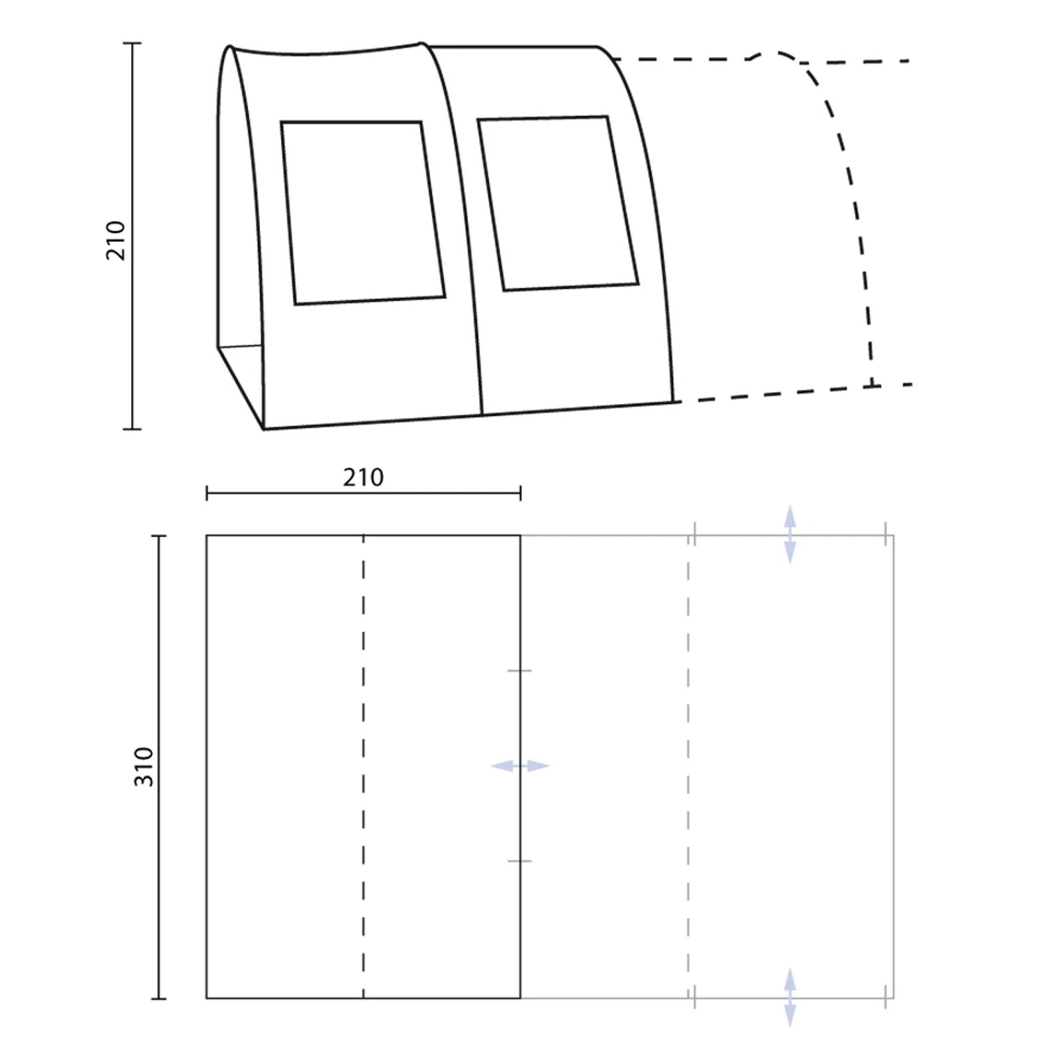 Dieses praktische Vorzelt lässt sich am Skandika Gotland 4 befestigen. Es bietet Schutz vor widrigem Wetter und viel Platz zum Kochen, Sitzen und Entspannen. Der Aufbau ist kinderleicht und die einstellbaren Gurtbänder sorgen für hohe Stabilität. Mit einer Wassersäule von 5.000 mm ist das Canopy absolut wasserdicht. Die optimale Ergänzung zu Ihrem Gotland 4.