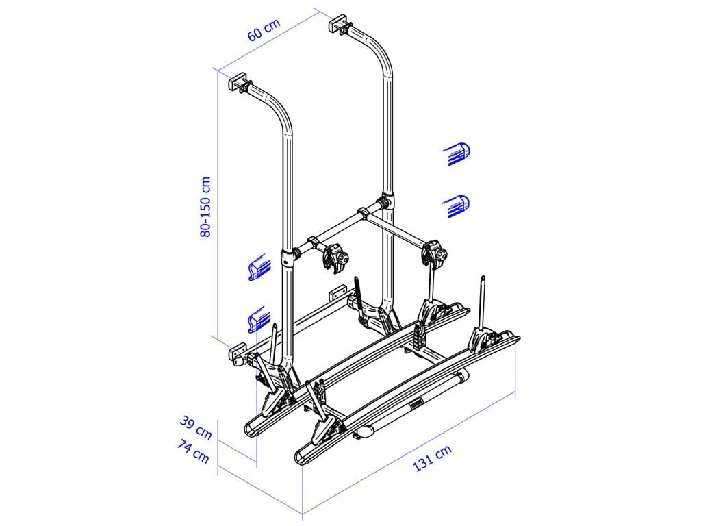 Zur weiteren Vereinfachung der Fahrradmontage besitzt das Thule Elite G2 bewegliche Schienen, die sowohl in der Breite als auch Tiefe verschoben werden können (nur 2. und 3. Schiene). Auf den verschiebbaren Radhalterungen kann nahezu jeder Fahrradtyp montiert werden.
